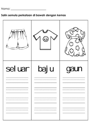 Lembaran Kerja Bm2 Menulis Nama Pakaian